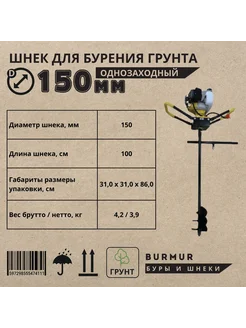 Универсальный бур-шнек по грунту 1 м, D-150 мм +рукоять