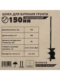 Универсальный бур-шнек по грунту 1 м, D-150 мм Для дачи