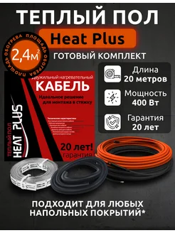 Теплый пол 2.4м2, греющий кабель 20м 400Вт