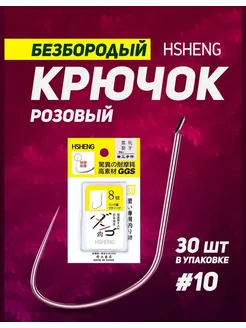 Крючок безбородый HSHENG HS-09 (Розовый, #10)