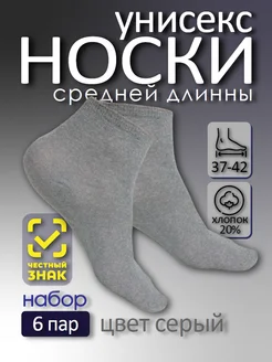 Носки серые, средняя длина, набор 6 пар