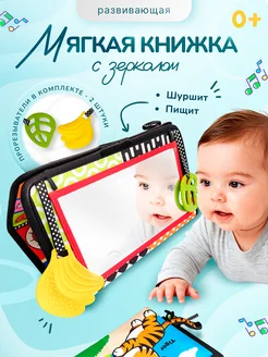 Мягкая книжка шуршалка для малышей с грызунком и зеркалом