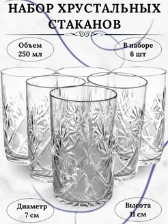 Чайные стаканы хрустальные набор в подстаканник 6 шт