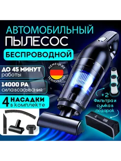 Турбо пылесос для автомобиля беспроводной мощный с насадками