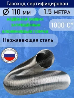 Гофрированный газоход 1,5м D110мм сталь (жаропрочный)