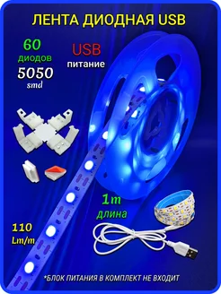 Светодиодная лента с USB проводом и коннектором, 1 метр