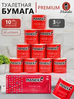 Туалетная бумага 3 слоя без аромата 10 рулонов серия RED