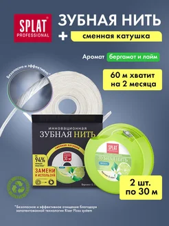 Зубная нить 30 м + сменная катушка 30 м, бергамот и лайм
