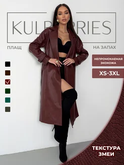 Плащ тренч длинный кожаный с поясом оверсайз под замшу