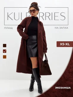 Плащ тренч длинный замшевый с поясом оверсайз