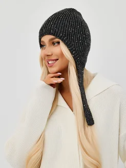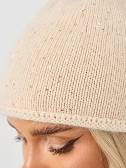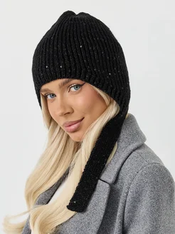 Шапка с пайетками женская гэтсби из ангоры вязаная тонкая