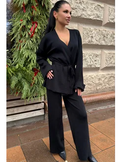 Костюм двойка трикотажный кимоно вязаный брючный шерстяной