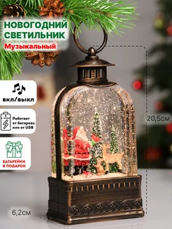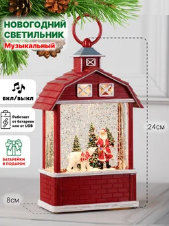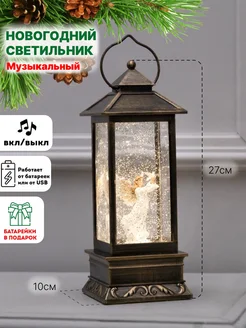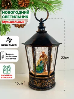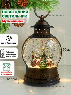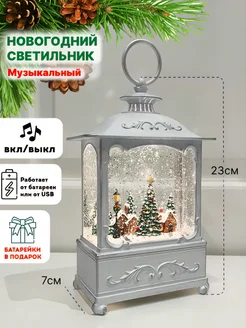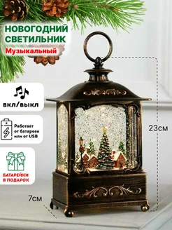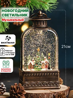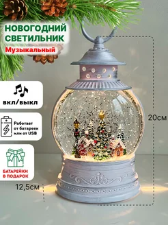 Новогодний фонарь со снегом светильник светодиодный