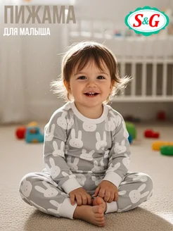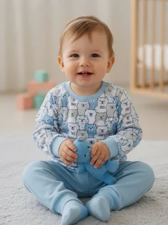 Пижама для новорожденных с начесом теплая со штанами детская