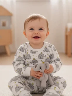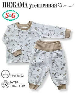 Пижама с начесом для новорожденных теплая со штанами