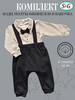 Комплект для новорожденного боди, полукомбинезон и бабочка