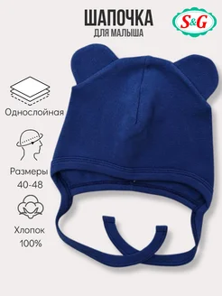 Шапка с ушками однослойная на завязках детская чепчик
