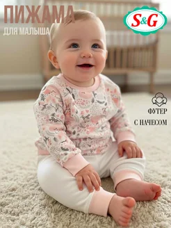 Пижама для новорожденных со штанами хлопковая (без начеса)