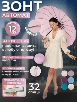 Зонт автомат антиветер большой усиленный 16 спиц с упаковкой