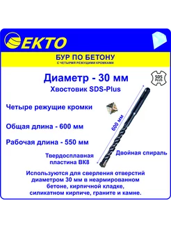 Бур по бетону для перфоратора SDS Plus 30 x 600 мм 4 реж кр