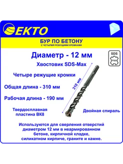 Бур по бетону для перфоратора SDS-Max 12 x 310 мм 4 реж кр