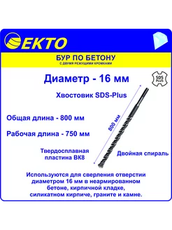 Бур по бетону для перфоратора 16 x 800 мм SDS Plus
