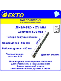 Бур по бетону для перфоратора SDS-Max 25 x 600 мм 4 реж кр