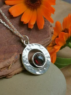 Серебряное ювелирное колье Гранат 925 Бохо Израиль