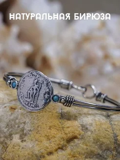 Ювелирный серебряный браслет Монета Бирюза 925 Бохо