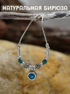 Ювелирное серебряное колье Бирюза 925 Израиль Бохо