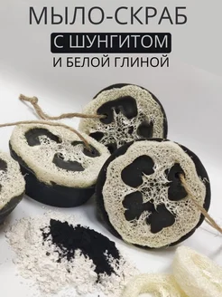 Авторское шунгитовое Мыло-скраб с люфой и белой глиной