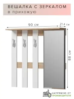 Вешалка с зеркалом и крючками настенная в прихожую