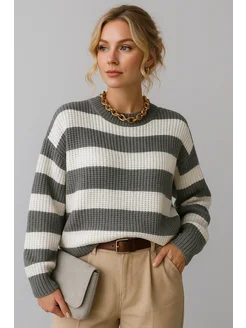 Свитер в полоску вязаный джемпер приталенный оверсайз