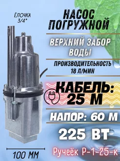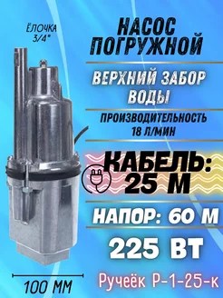 Насос погружной Ручеёк-1М нижний забор шнур 25м