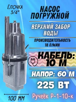 Насос вибрационный погружной нижний забор 225Вт 60м 15м