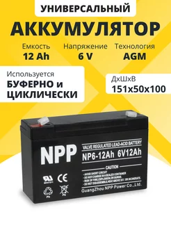 Аккумулятор ибп 6v 12Ah AGM F1 на детскую машинку, мотоцикл