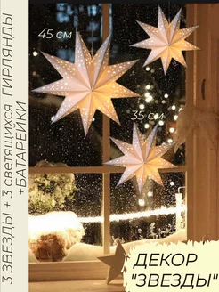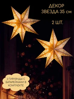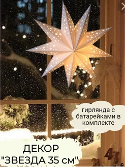 Рождественская звезда бумажная светящаяся с гирляндой 35 см