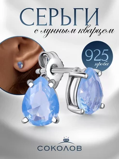 Серьги серебро 925 лунный кварц