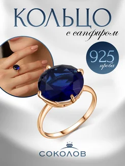 Кольцо серебро 925 позолоченное с сапфиром