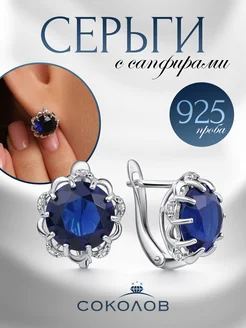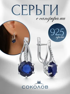 Серьги серебро 925 сапфир