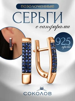 Серьги серебро 925 позолоченные с сапфирами