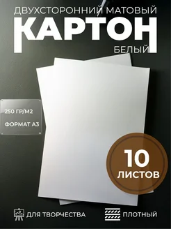 Картон белый двусторонний для школы 250 гр. А3 10 листов