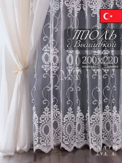 Тюль 400х240 жаккардовый с вышивкой для гостиной