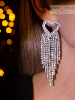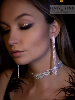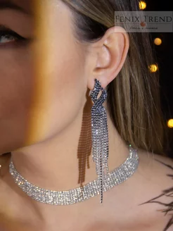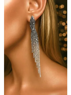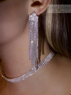 Серьги гвоздики длинные висячие со стразами и жемчугом