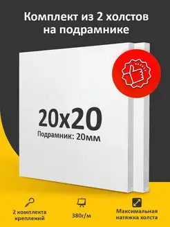 Холст на подрамнике 20х20 см набор 2 штуки, грунтованный