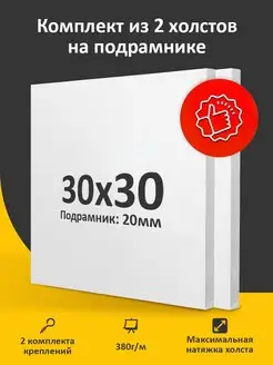Холст на подрамнике 30х30 см набор 2 штуки, грунтованный