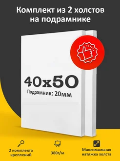 Холст на подрамнике 40х50 см набор 2 штуки, грунтованный