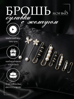 Брошь булавка с жемчугом и цветочком набор 8 шт