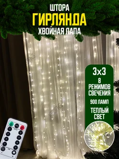 Гирлянда штора хвойная лапа мишура 3х3 с пультом управления