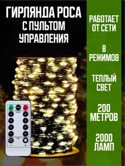 Гирлянда нить роса с пультом управления 200 м